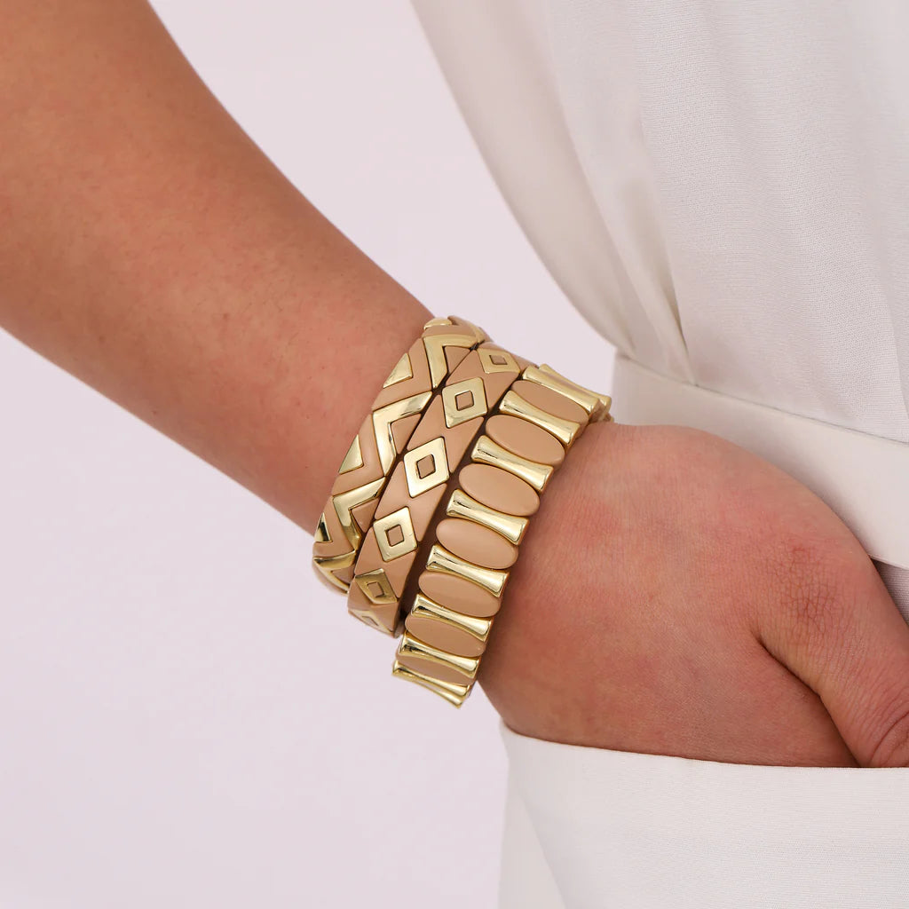 Each bracelet is a true statement piece that can be worn alone or stacked with other bangles for a personalized and fashionable look.