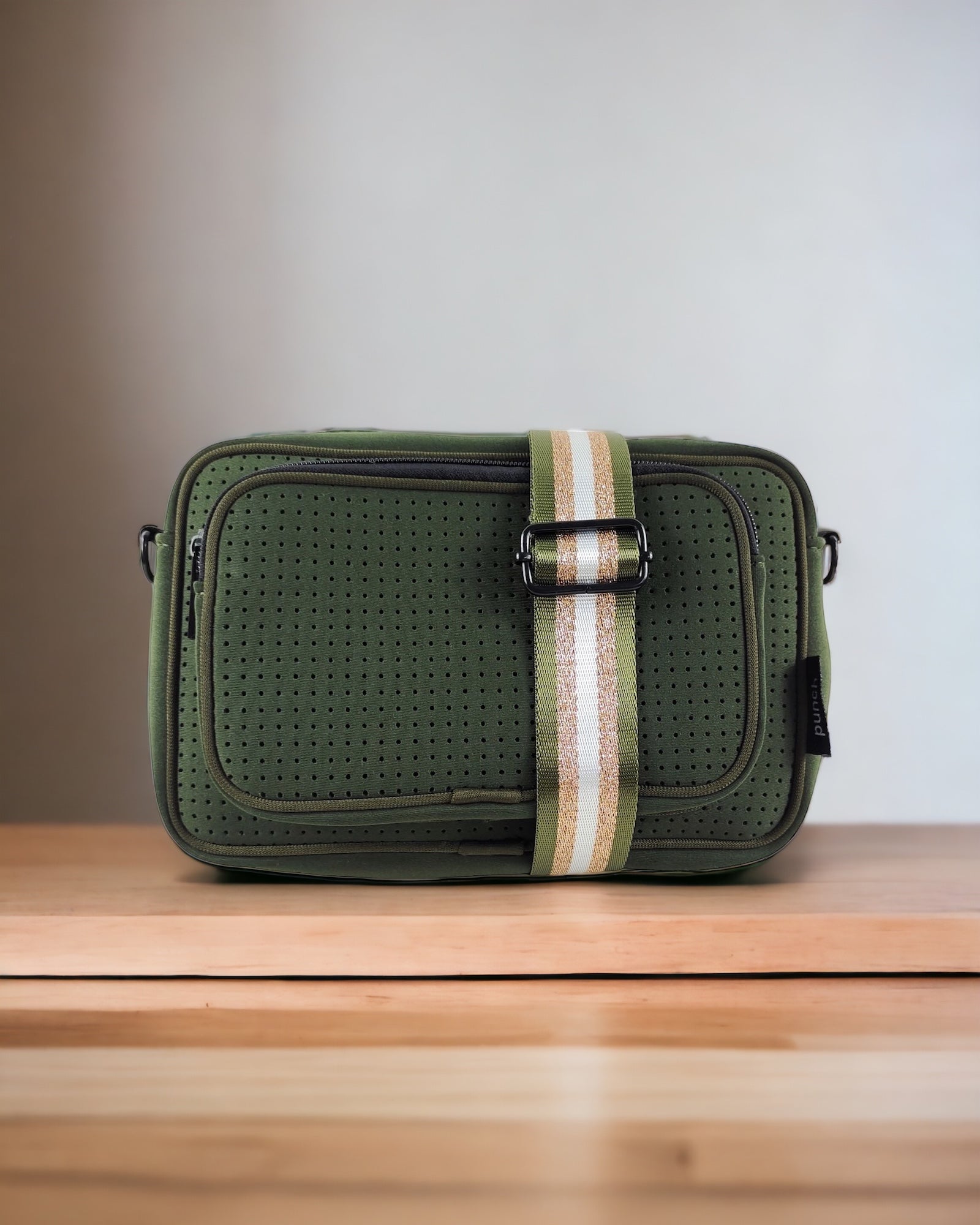 Neoprene Metro Rectangle Shoulder Bag With Front Pocket - Olive Green