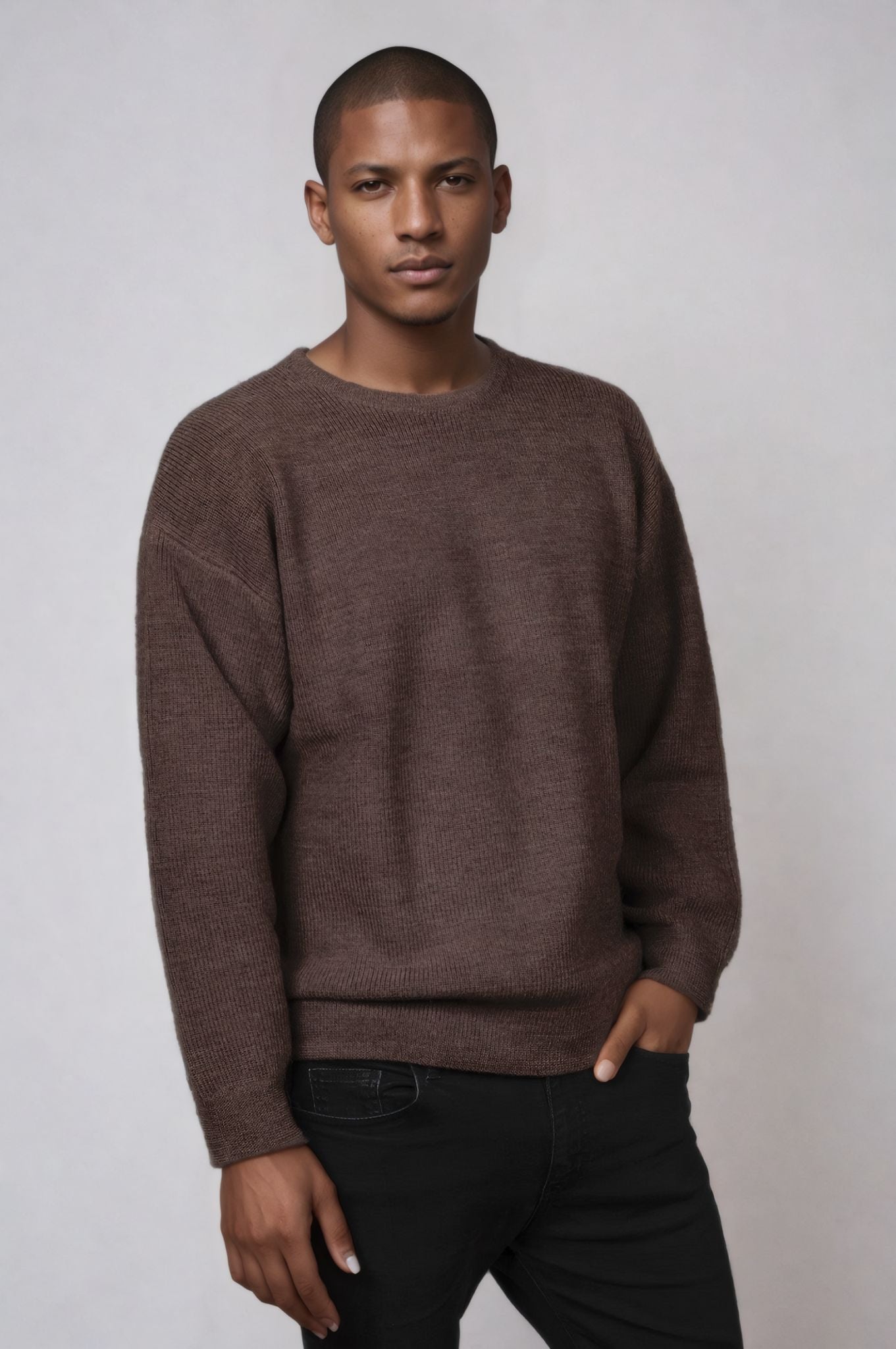 Ansett Pure Wool Brown Fisherman Rib Knit Jumper