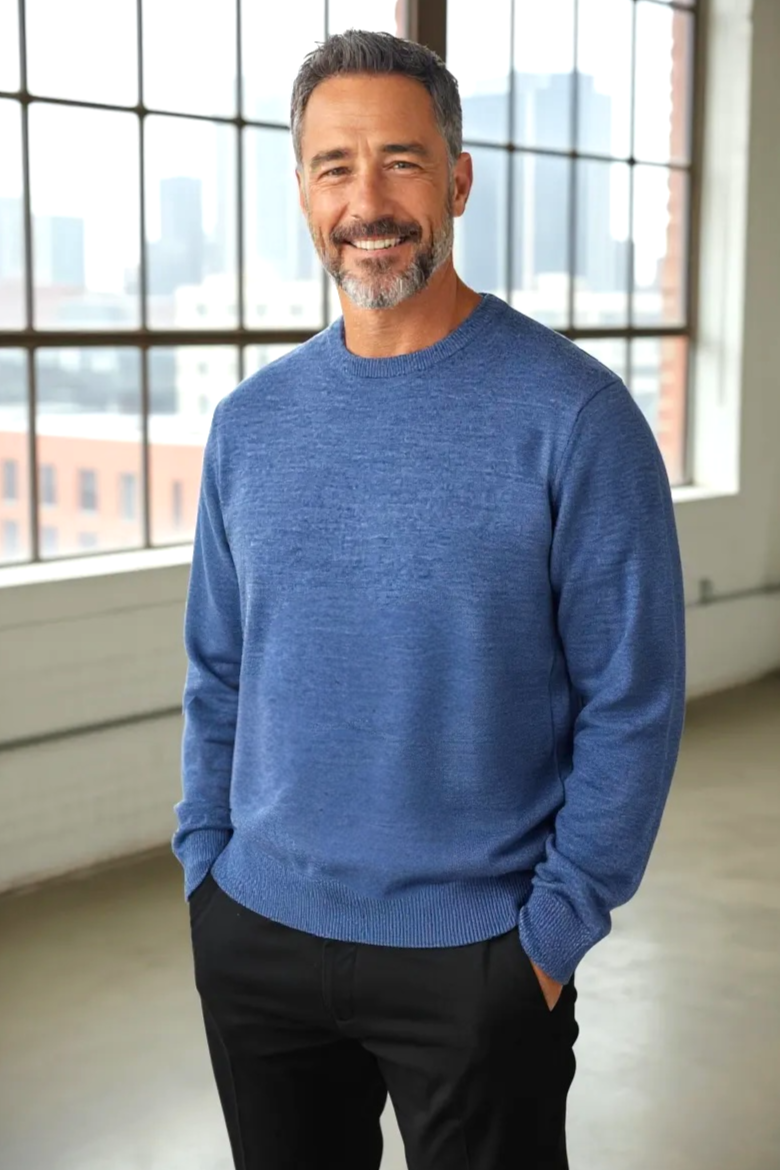 Machine washable jumpers are a blessing, aren't they? With the Ansett Wool Denim Blue Machine Washable Crew Neck Jumper, you have effortless style and everyday practicality. Made from 100% Australian super-wash wool, this medium-weight jumper allows warmth and breathability, making it perfect for year-round comfort. Whether you are layering it over a shirt for work or pairing it with jeans on the weekend.
