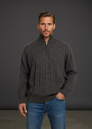 Ansett Charcoal Grey Half Zip Cable Wool Jumper