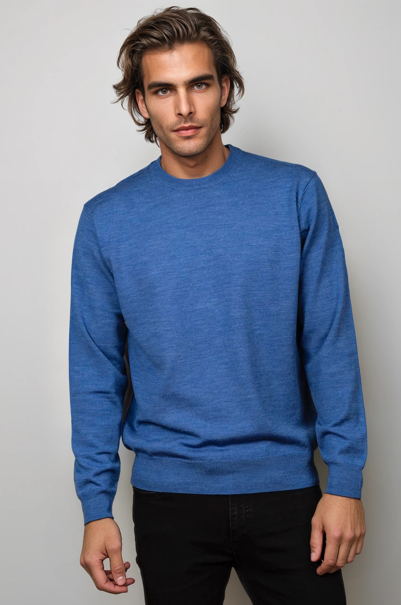 Our fine weight, merino wool crew neck jumper is beautiful when on.