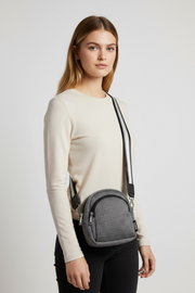 Grey and Black Punch Neoprene Moon Shoulder Bag