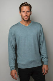 Ice Blue Fine Weight Merino Wool V Neck Jumper