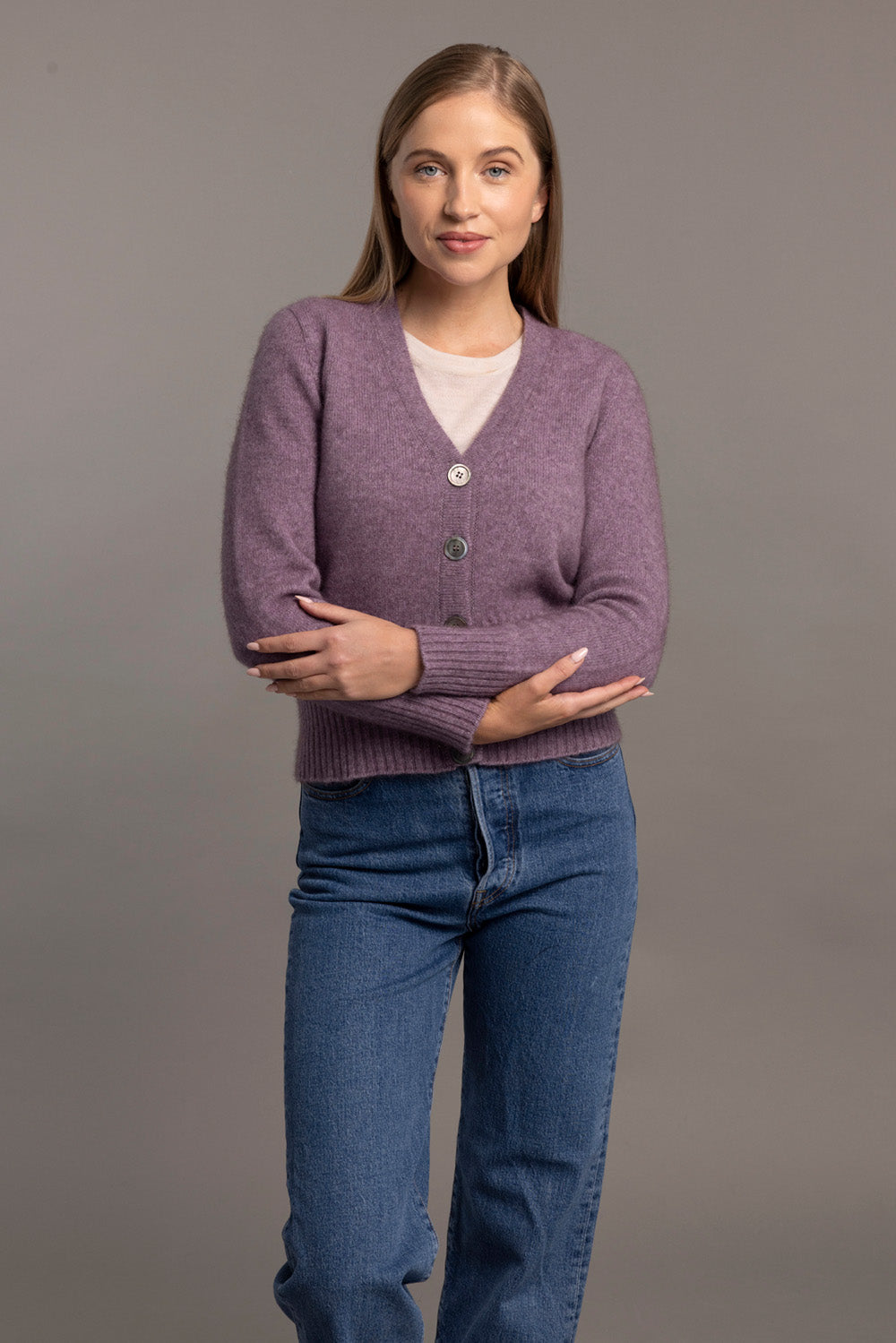 Knitted using our carefully sourced Natural Fibre blend of Possum Fur, Merino Wool and Mulberry Silk and finished with feature Shell Buttons, our Possum Merino Rib Cardi is a gorgeous take on a classic cardigan. Rib detailing on the sleeve and hem partnered with a Deep V Neckline help to create a timeless, tailored look.