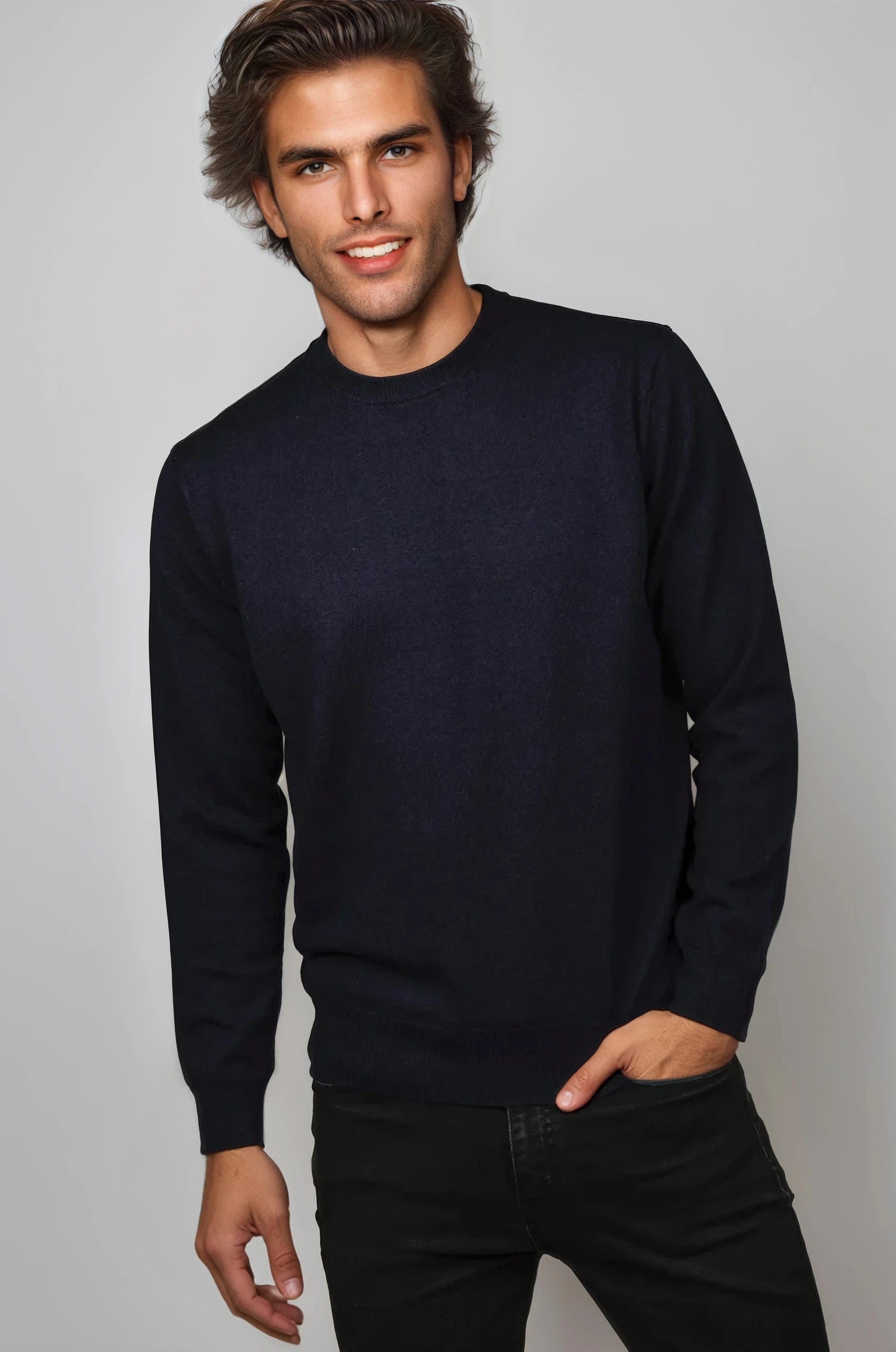 Navy Blue Fine Weight Merino Wool Crew Neck