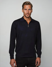 Ansett Navy Blue Half Zip Fine Merino Wool Jumper