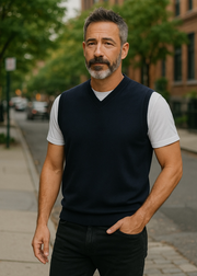 Ansett Navy Blue Merino Wool Fine Weight Vest