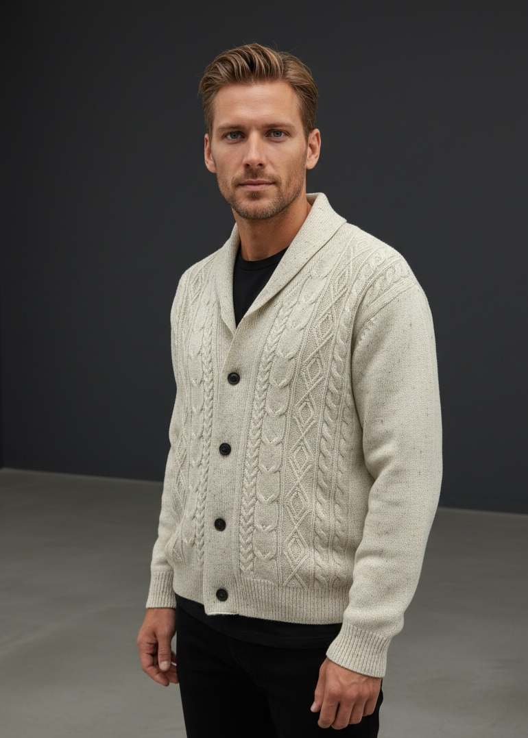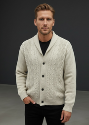 Ansett Men's Shawl Neck Cardigan 100% Wool - Snow