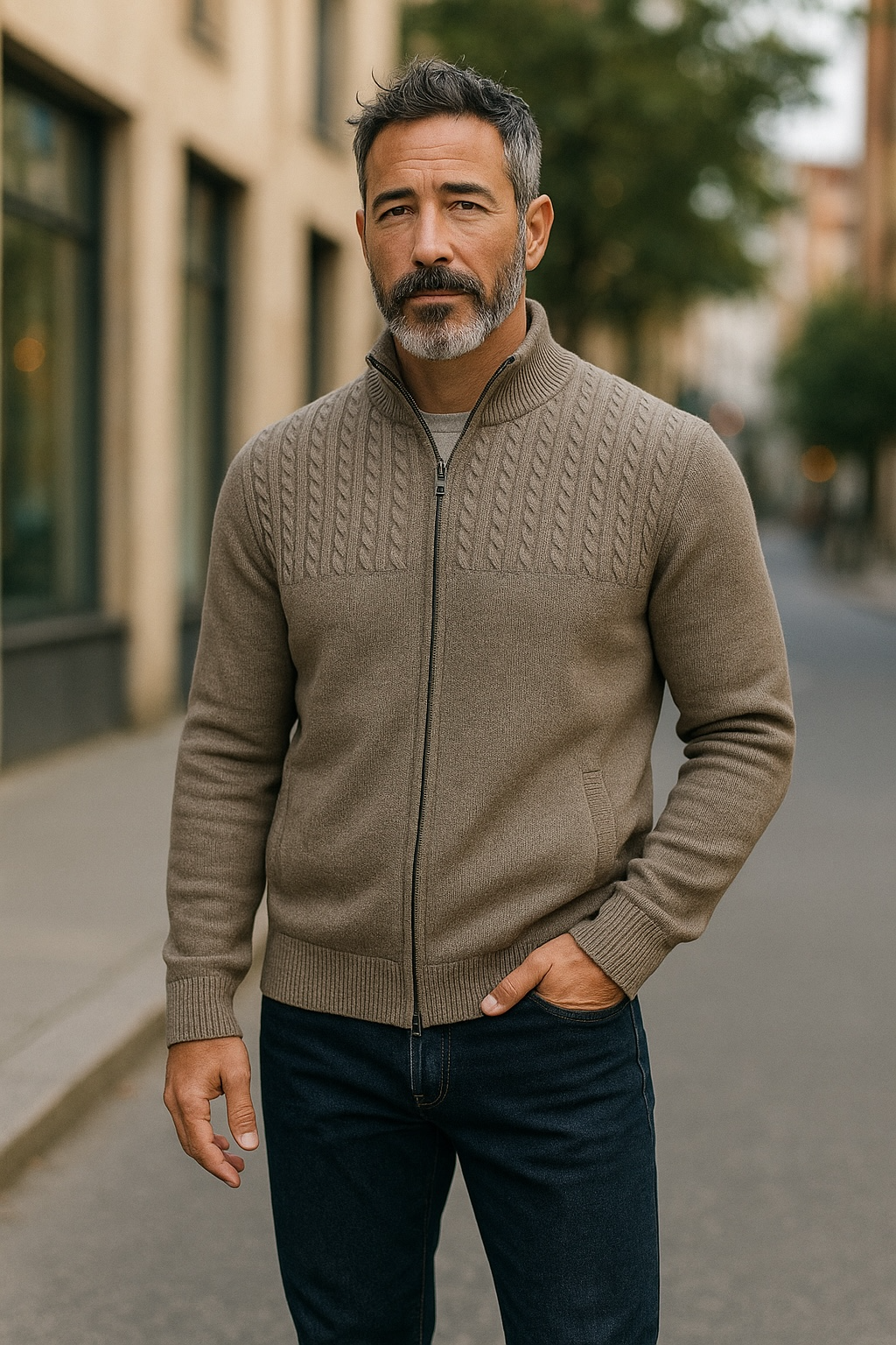 Ansett Nutmeg Brown Full Zip Cashmere Merino Wool Jacket