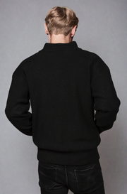 Ansett Wool Black Zip Jacket With Black Elbow And Shoulder Patches