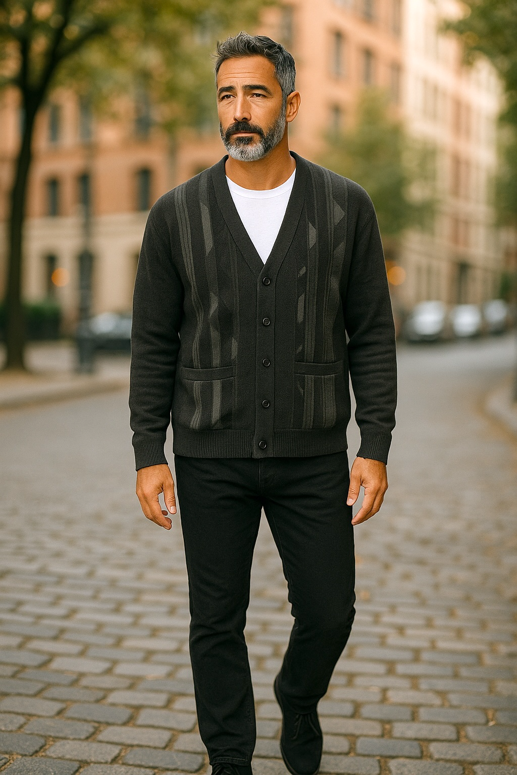 Charcoal Grey Pattern V Neck Cardigan - Tradewinds By Ansett