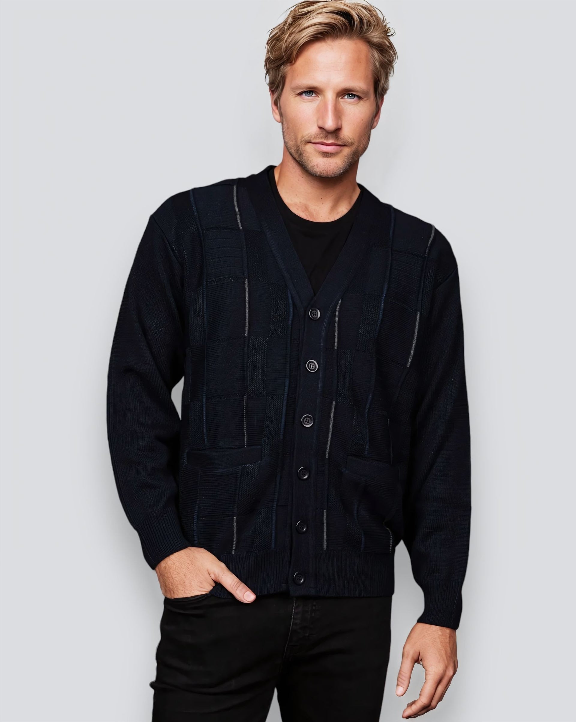 Navy Blue V Neck Cardigan - Tradewinds By Ansett