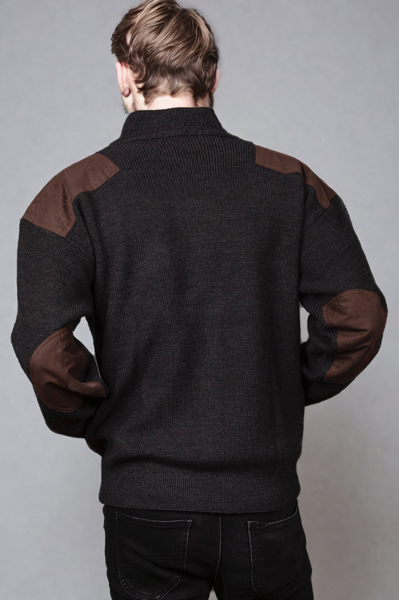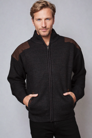 The Ansett Pure Wool, Fisherman Rib Knit Jacket With Patches On The Shoulders And Elbows Is A Classical Style And Looks Great On All