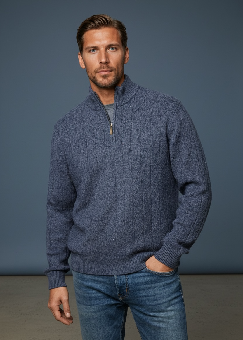 Looking for warmth and style? Then, this stylish, Pure Wool, Half Zip Jumper can be the favourite in your wardrobe.