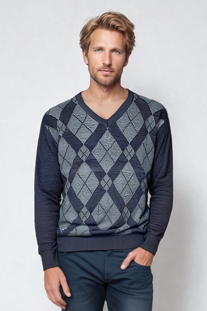 Granite Grey Argyle V Neck Jumper - Tradewinds By Ansett