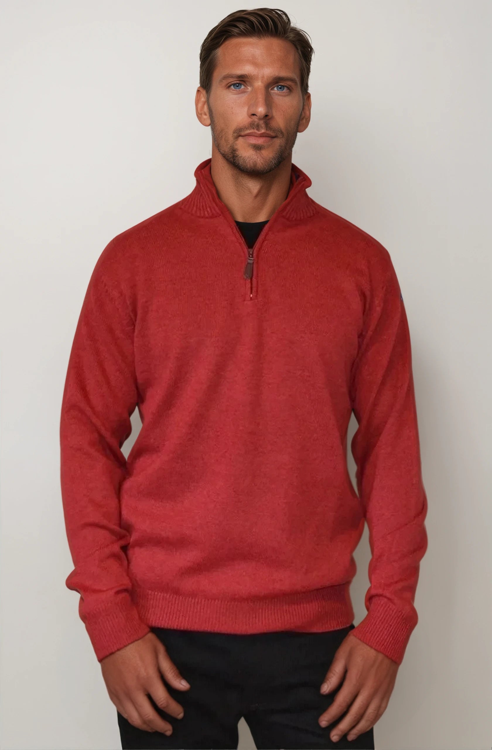 Ansett Rhubarb Red Half Zip Cashmere Merino Wool Jumper