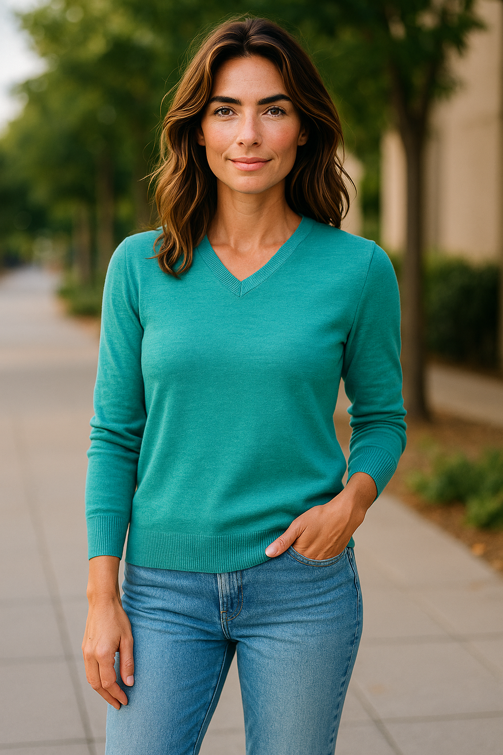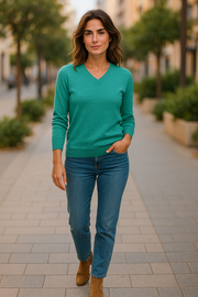 Fine Weight Merino Wool V Neck Jumper - Mineral Green