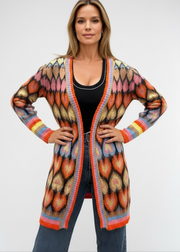 This funky heart patterned, Oversized fluffy cardigan ticks all the right boxes to become your new favourite over-piece this season.