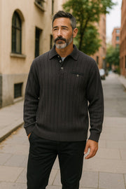 4516 Charcoal Collar Polo Jumper - Tradewinds By Ansett