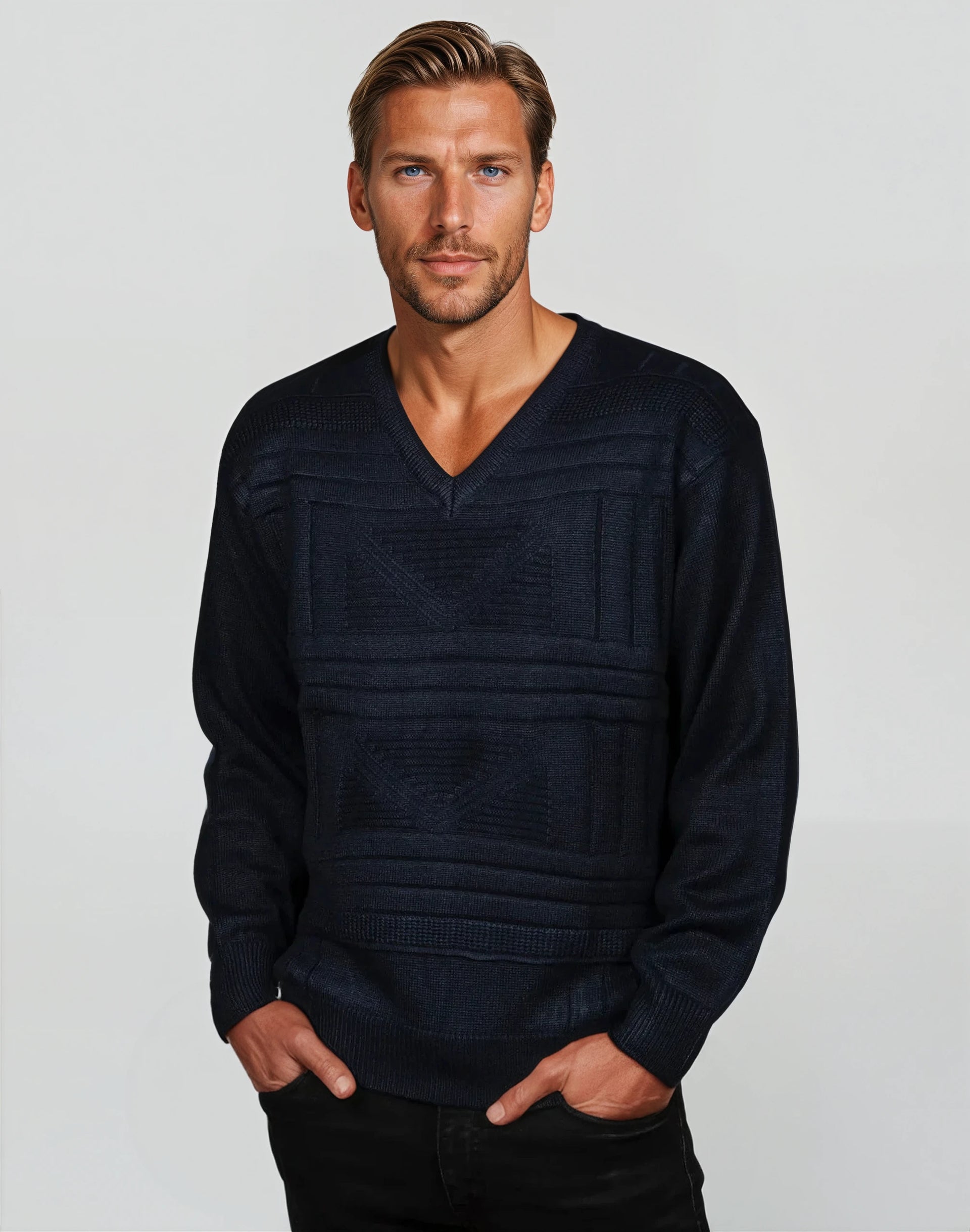 9123 Navy V Neck Jumper - Tradewinds By Ansett