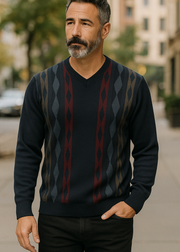9363 Navy Blue Diamond V Neck Jumper - Tradewinds By Ansett