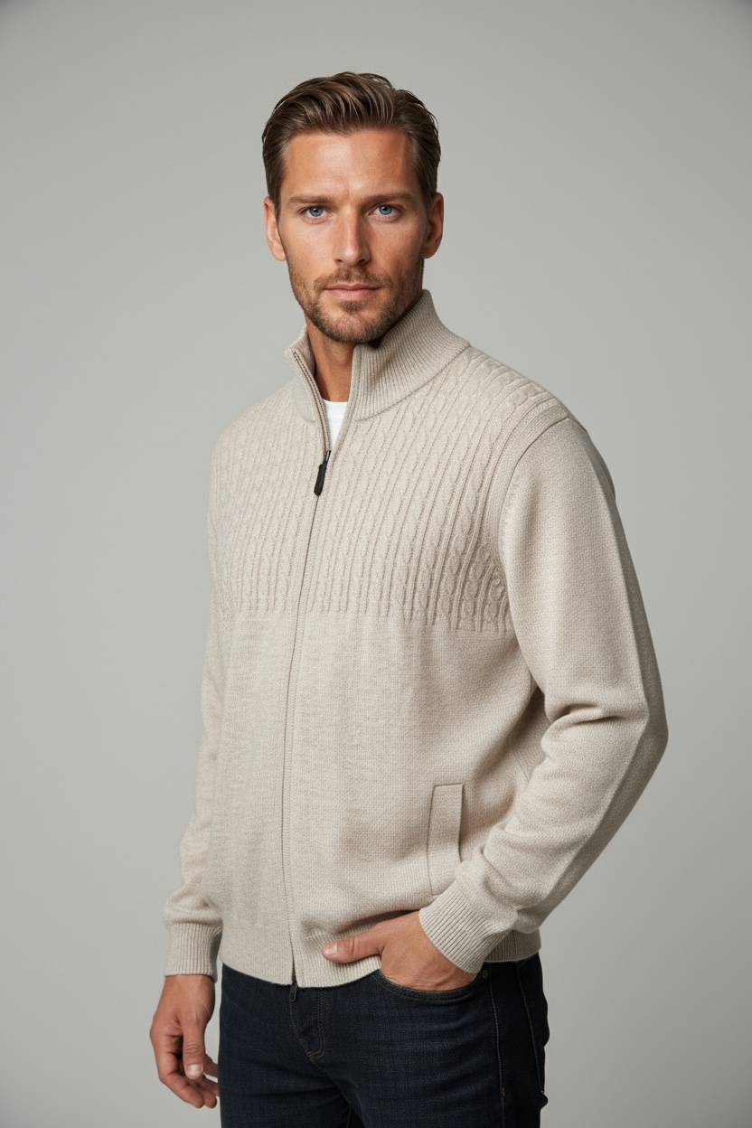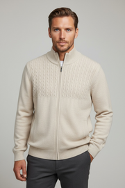 Ansett Beige Full Zip Cashmere Merino Wool Jacket