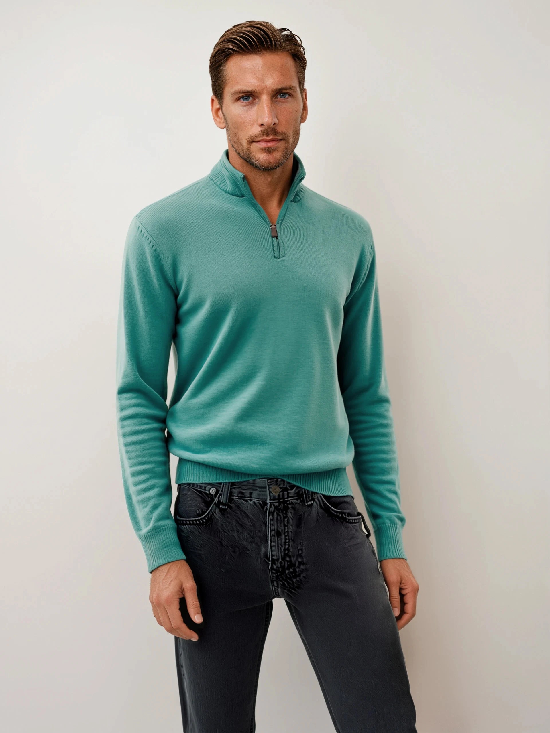 Ansett Jade Green Half Zip Cashmere Merino Wool Jumper