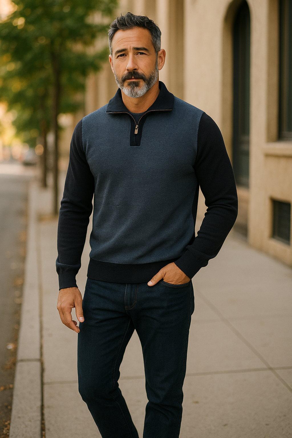Ansett Navy Blue 2 Tone Quarter Zip Fine Merino Wool Jumper