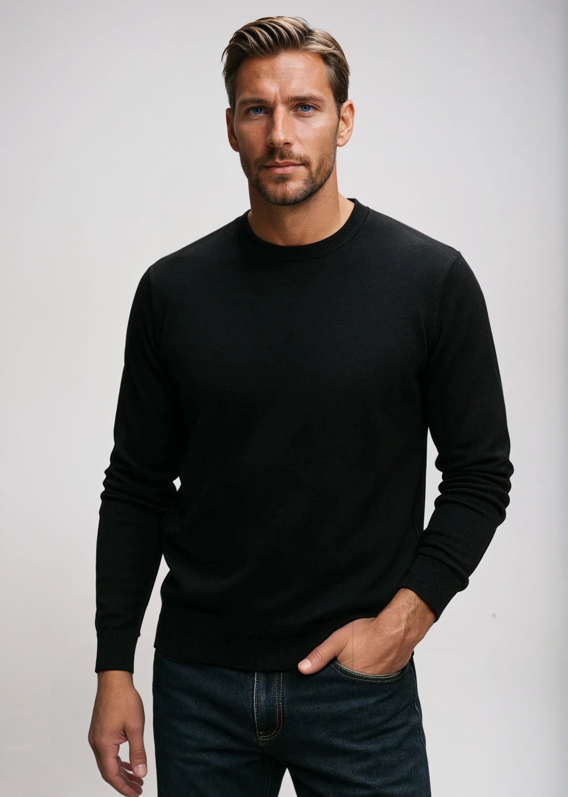 Ansett Black Super Wash Wool Crew Neck Jumper