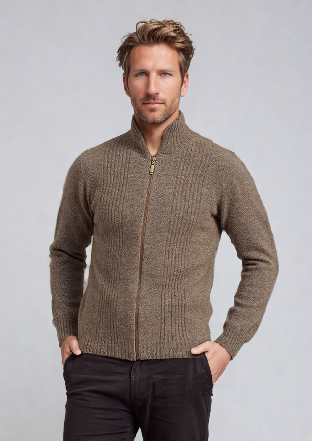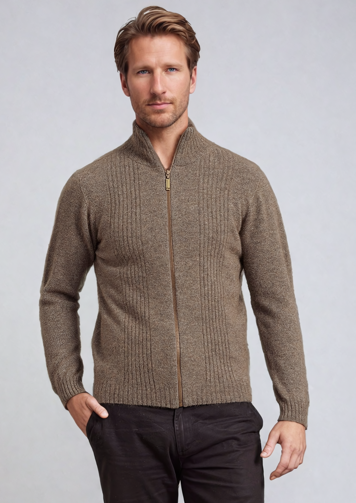 Bark Brown Possum Merino Rib Front Zip Jacket