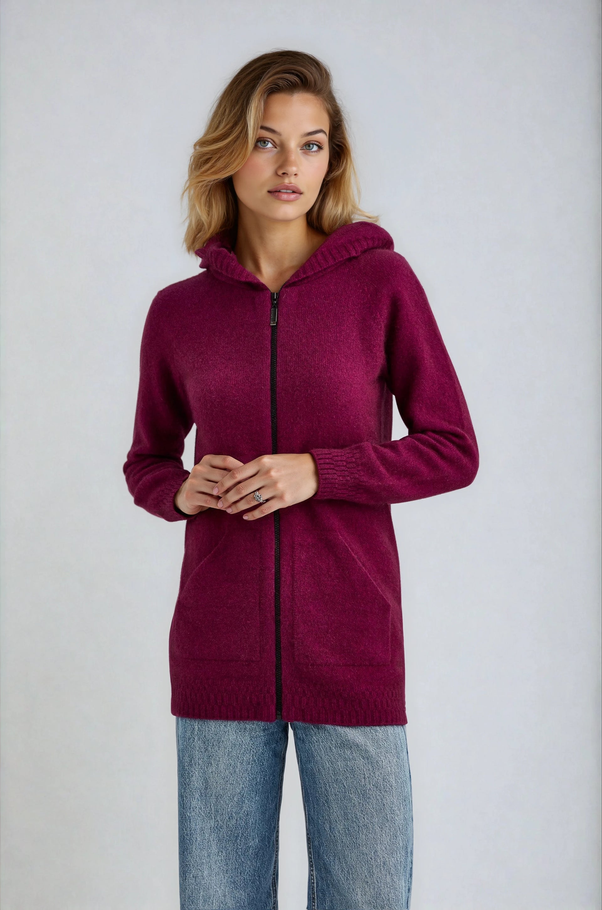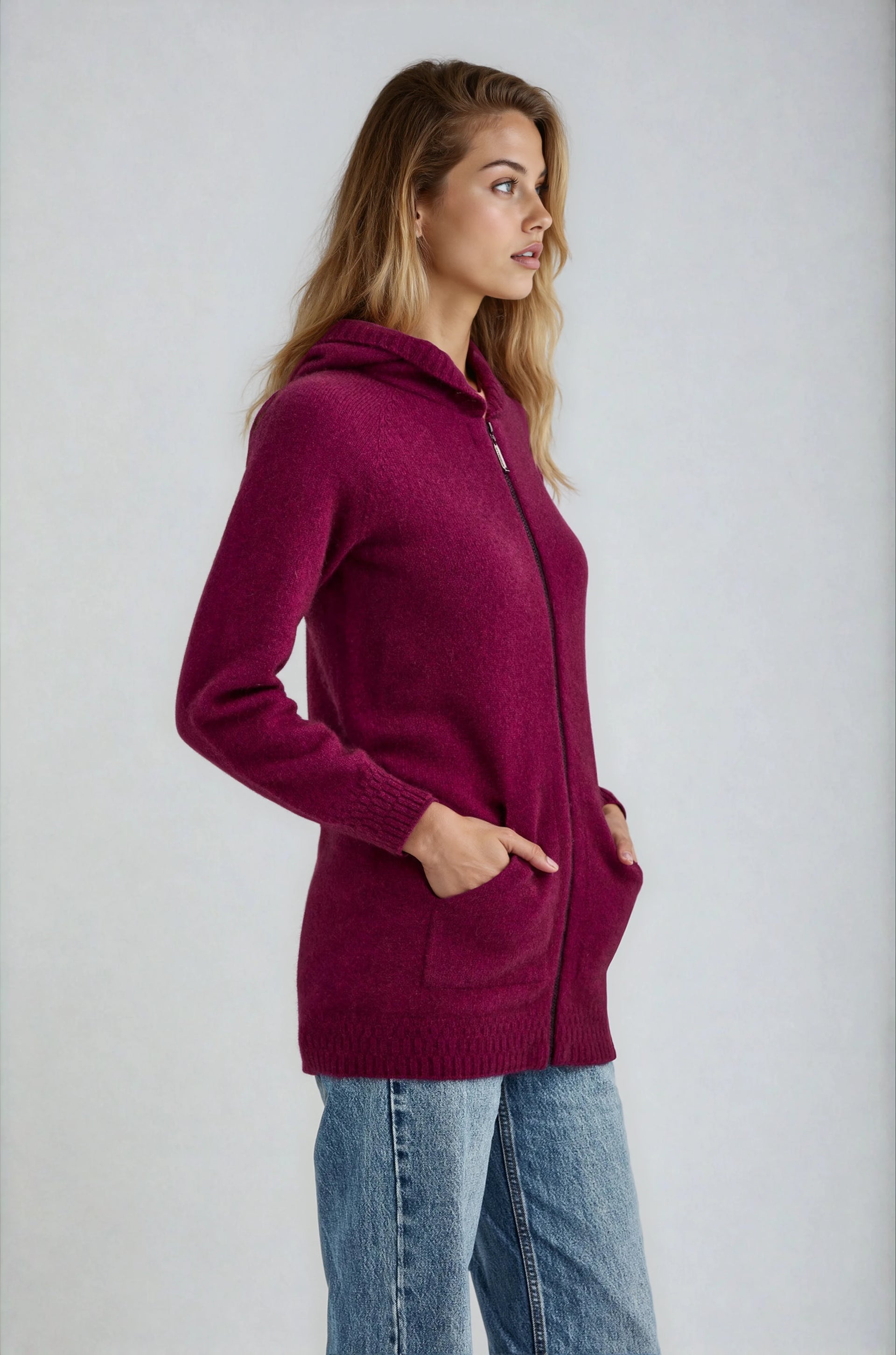 Mid-length zip up hoodie