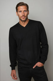 Ansett Black Fine Weight Merino Wool V Neck Jumper
