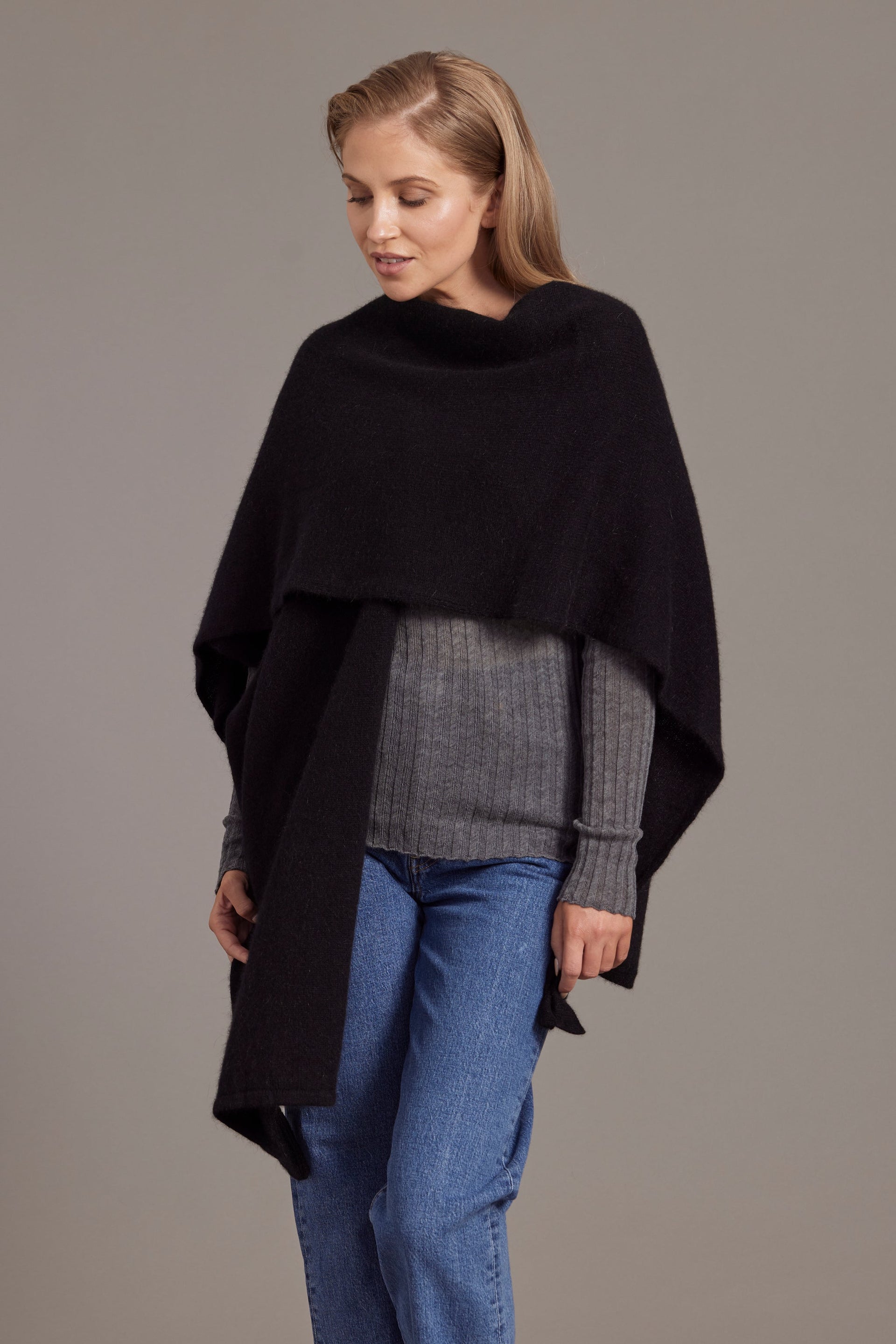 Black McDonald Possum Merino Split Front Cape Wrap