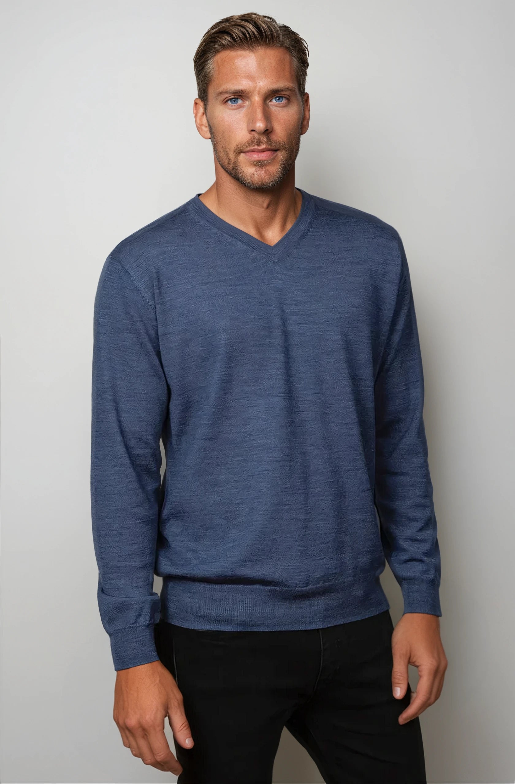 Ansett Blue Fine Weight Merino Wool V Neck Jumper