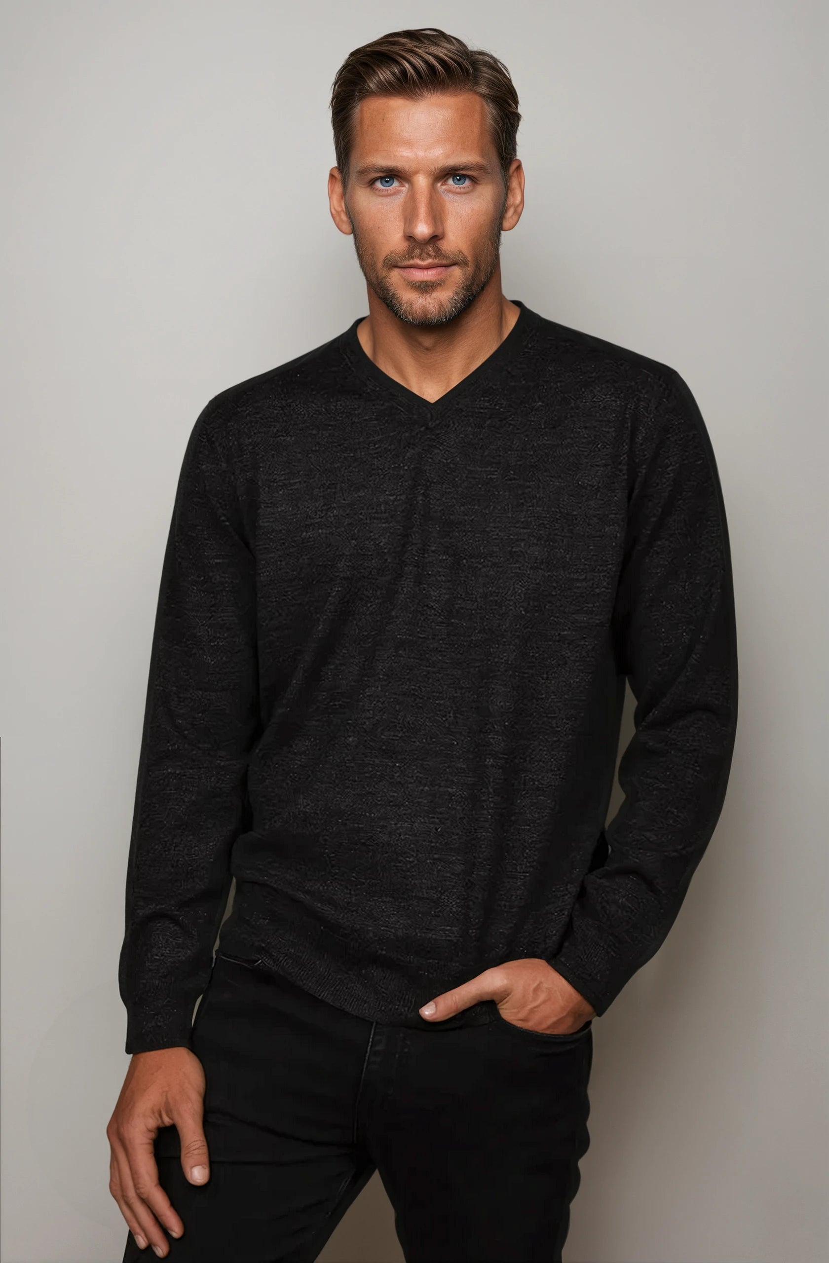 Ansett Charcoal Grey Fine Weight Merino Wool V Neck Jumper