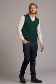 Forest Green Possum Merino V Neck Vest