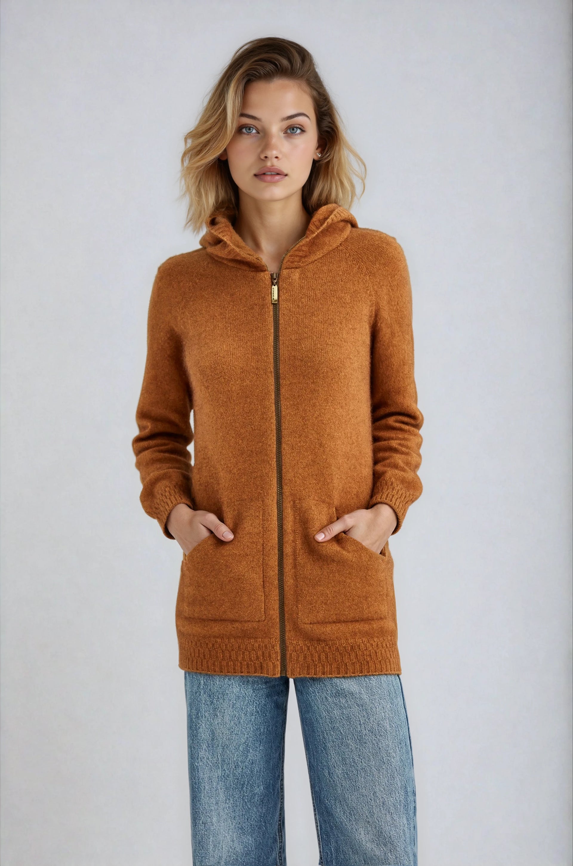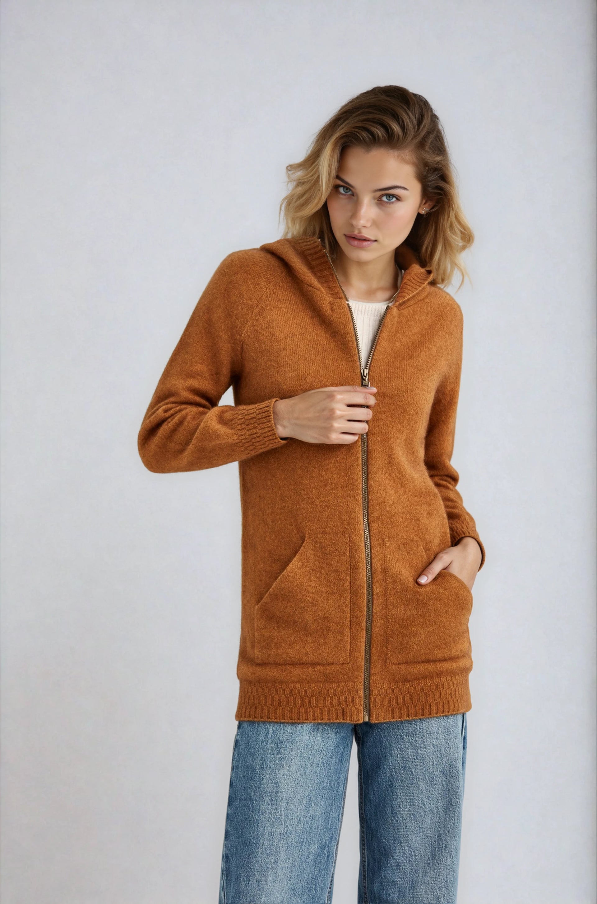 Mid-length zip up hoodie