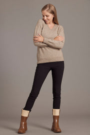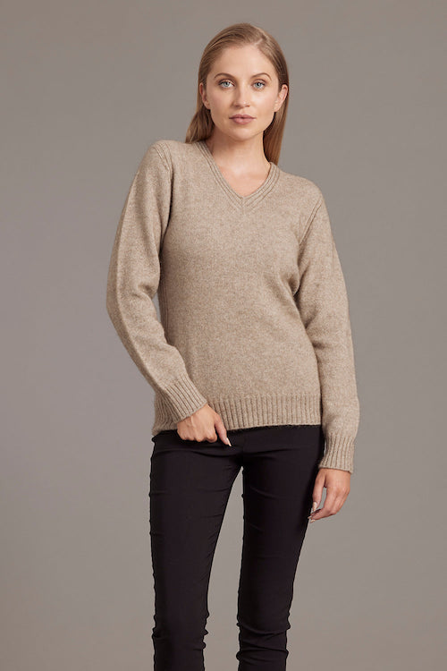Every woman needs a simple and basic V-Neck McDonald natural jumper in her wardrobe that is effortless. This merino, possum silk jumper is made with the finest possum merino yarn blend in New Zealand and it is a staple for your winter wardrobe. A smart rib detail adds that touch of style found in all McDonald knitwear.