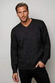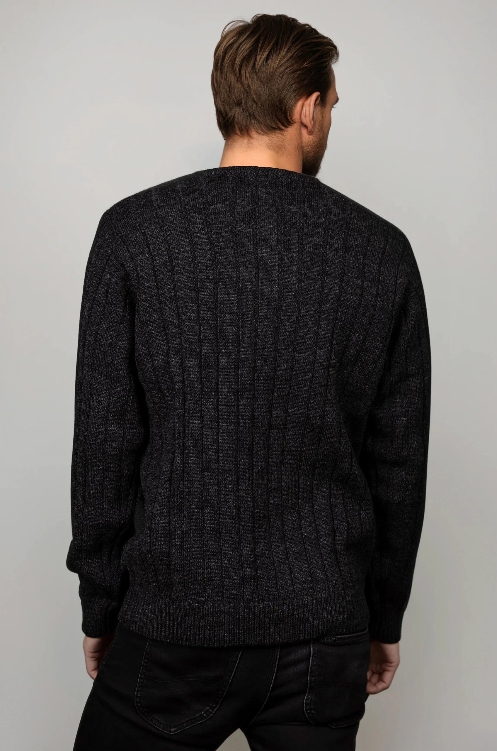 Ansett Charcoal Grey Cable V Neck Wool Jumper