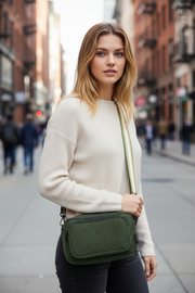 Neoprene Metro Rectangle Shoulder Bag With Front Pocket - Olive Green