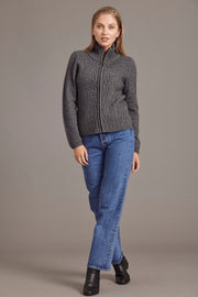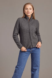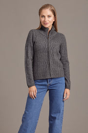 Pewter Grey Possum Merino Lace Zip Cardigan