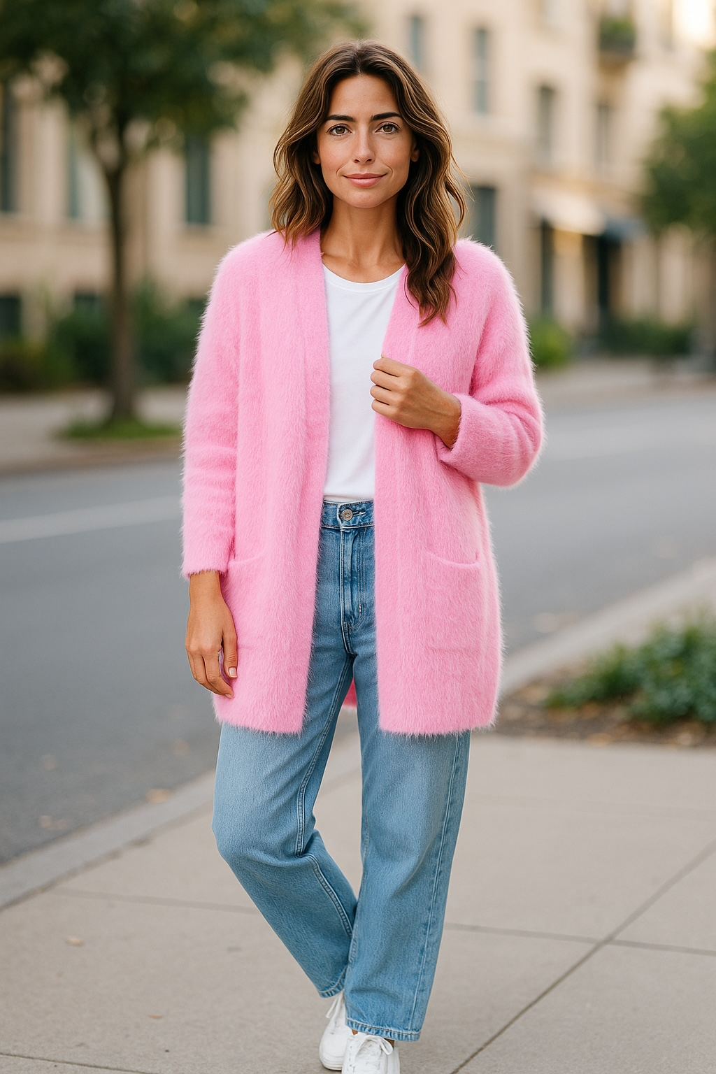 Light Pink Fluffy Oversized Cardigan