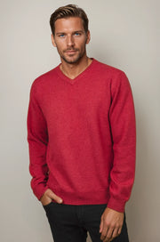 Ansett Rhubarb Red Cashmere Merino Wool V Neck Jumper