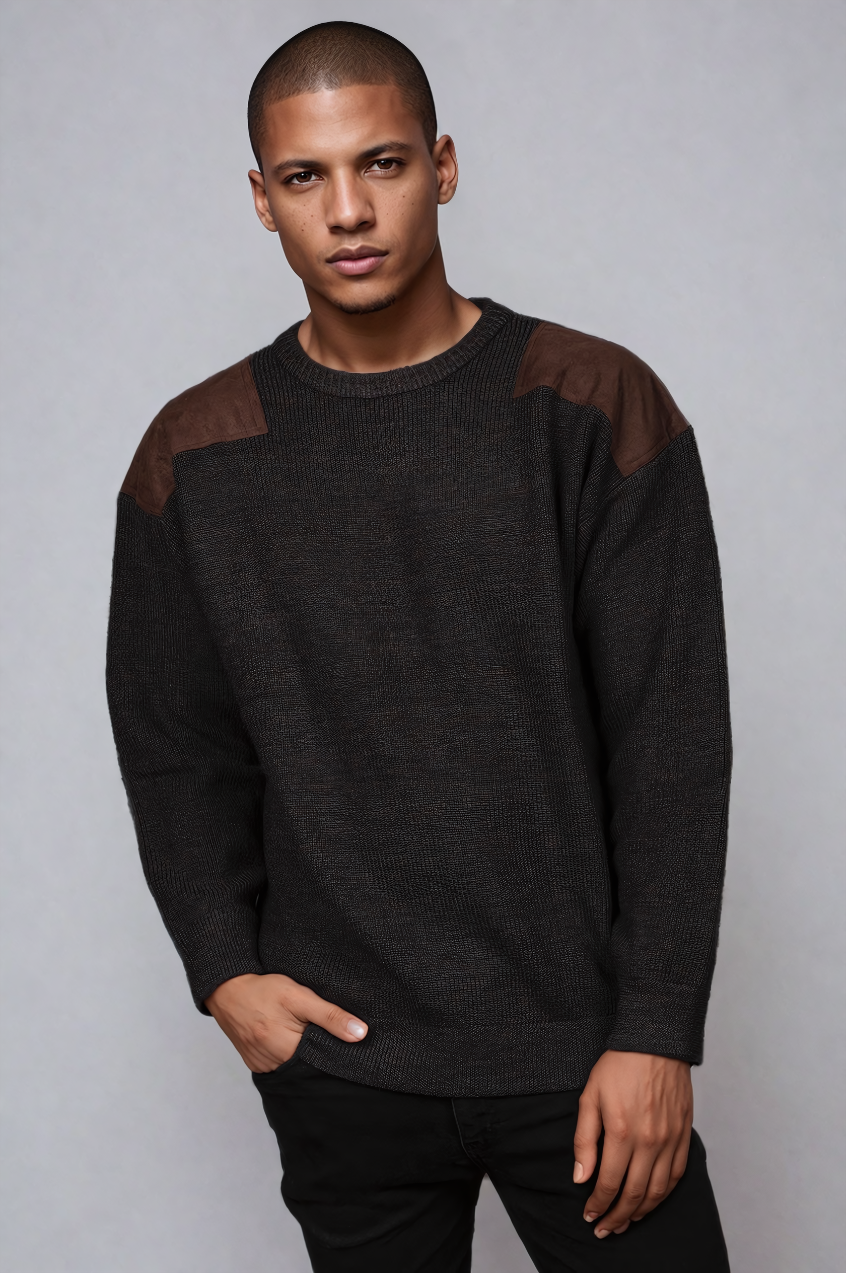 The Ansett Pure Wool, Fisherman Rib Knit Jumper With Patches On The Shoulders And Elbows Is A Classical Style And Looks Great On All