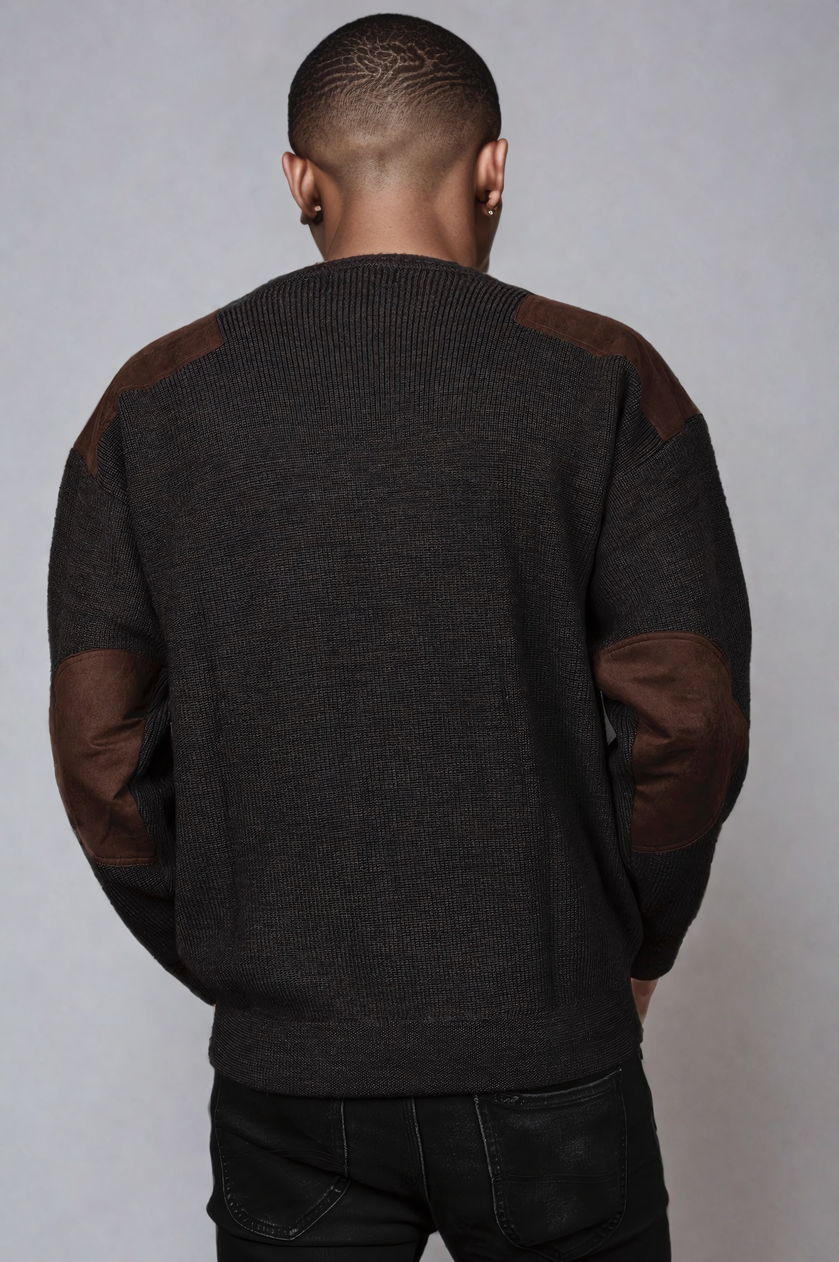 Ansett Wool Timber Jumper With Timber Elbow And Shoulder Patches