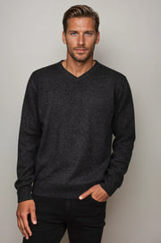 Ansett Charcoal Grey Cashmere Merino Wool V Neck Jumper