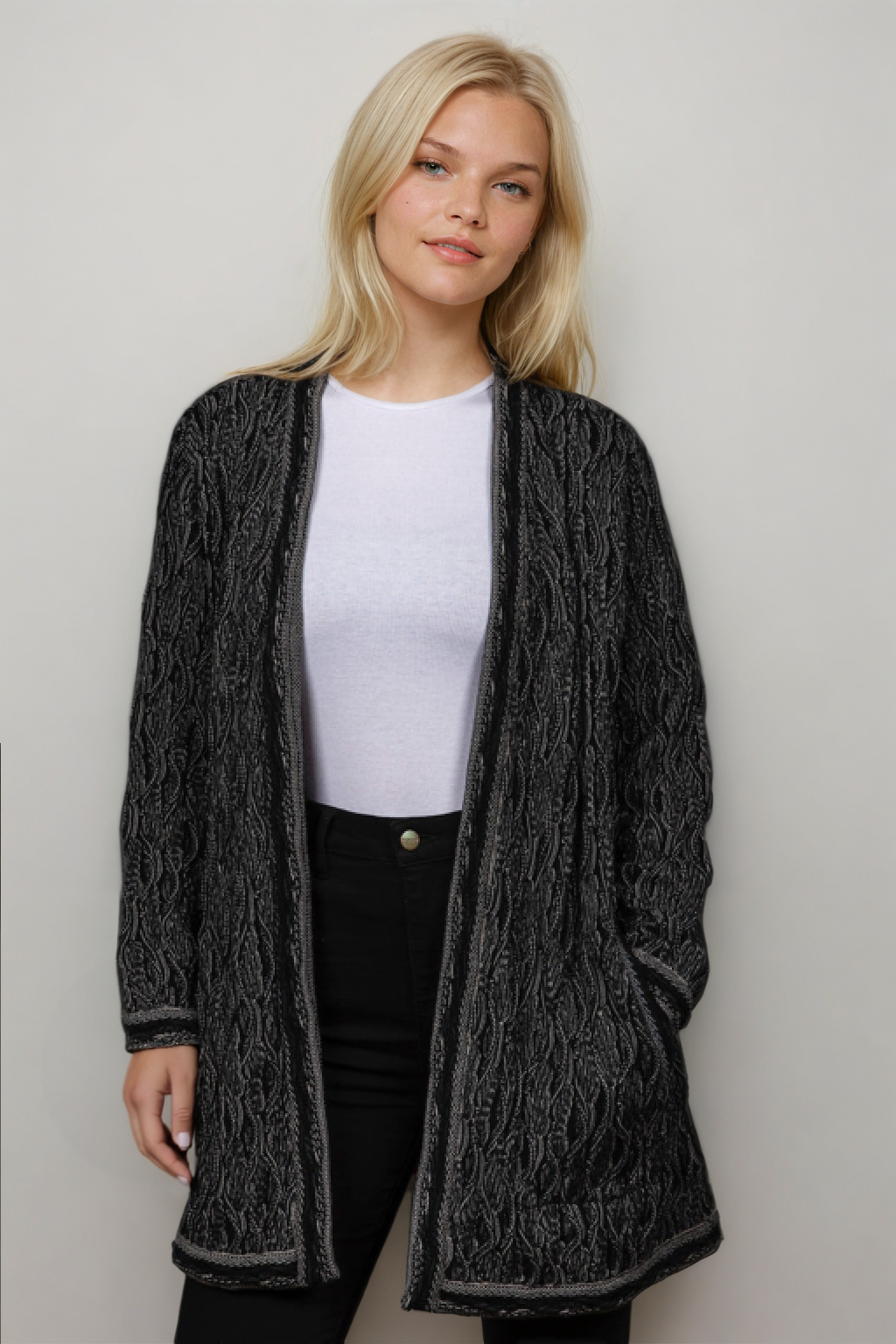 Wave - Black Ladies Swing Coat Merino Wool 3D Geccu Knitwear