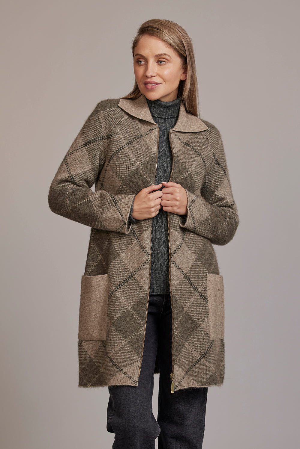Ash Mocha - Possum Merino & Silk Tartan Coat