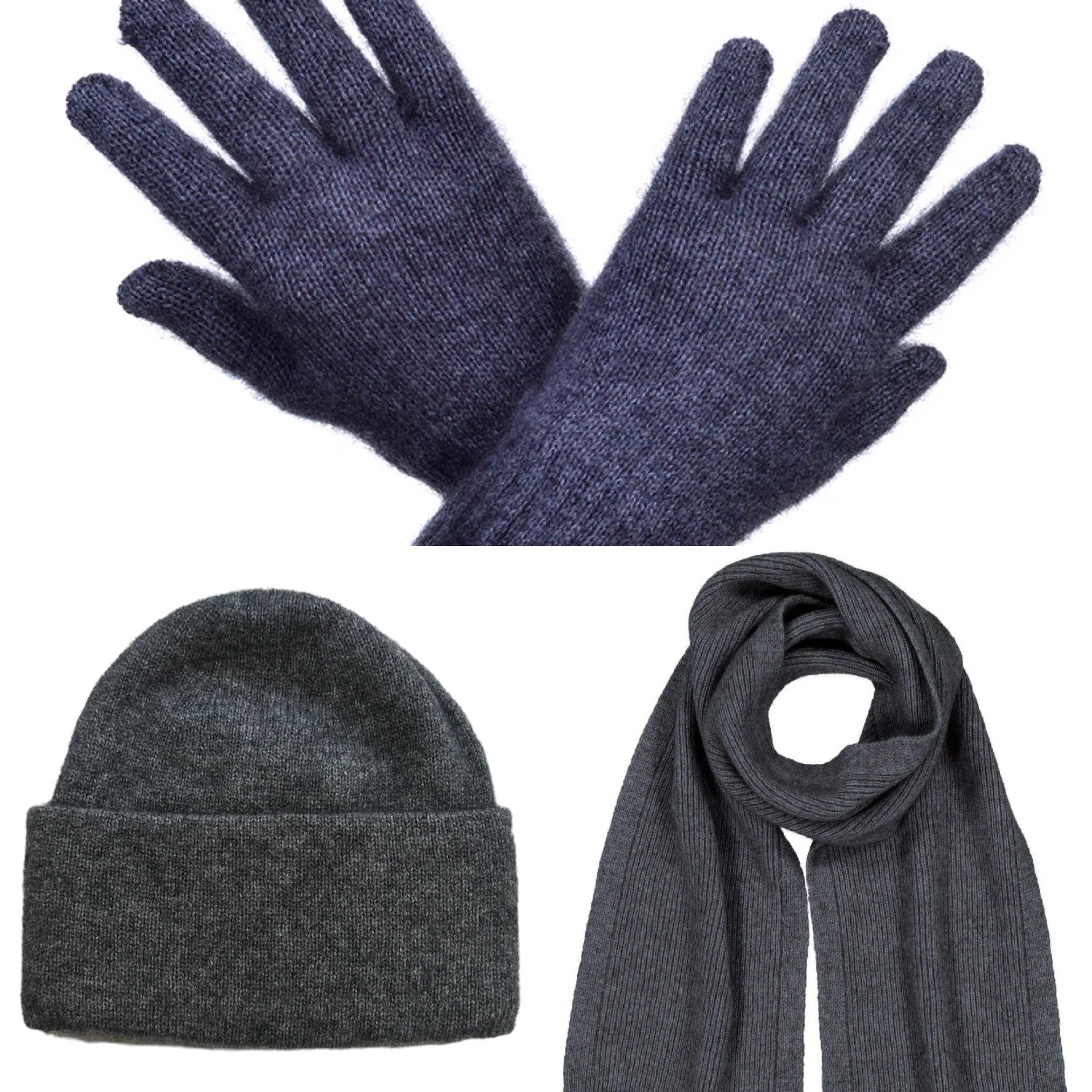 Possum Merino Beanie, Glove & Scarf Set - Pewter